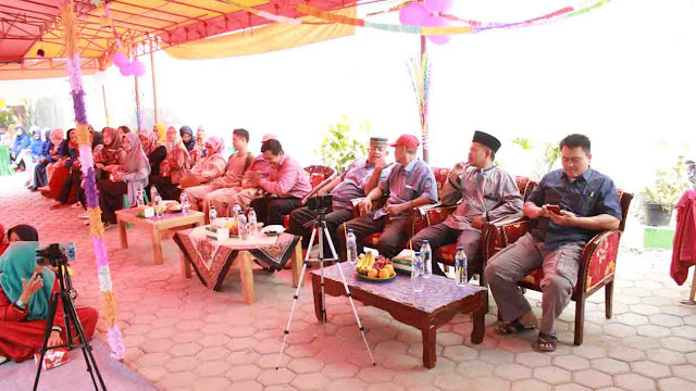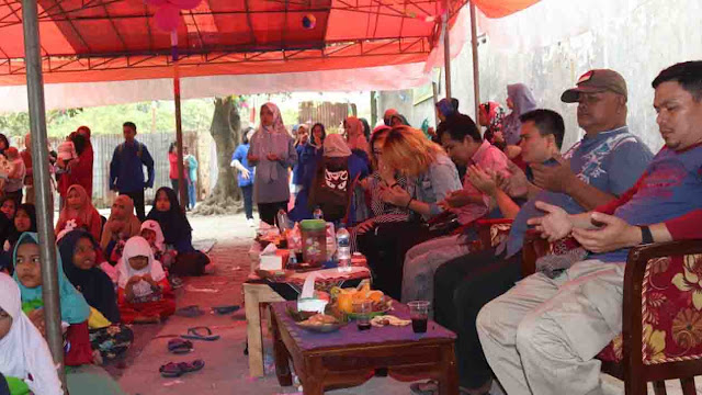 Tamu undangan dari sesepuh dan tokoh masyarakat wilayah Harapan Jaya, khusu mendengarkan tausyah